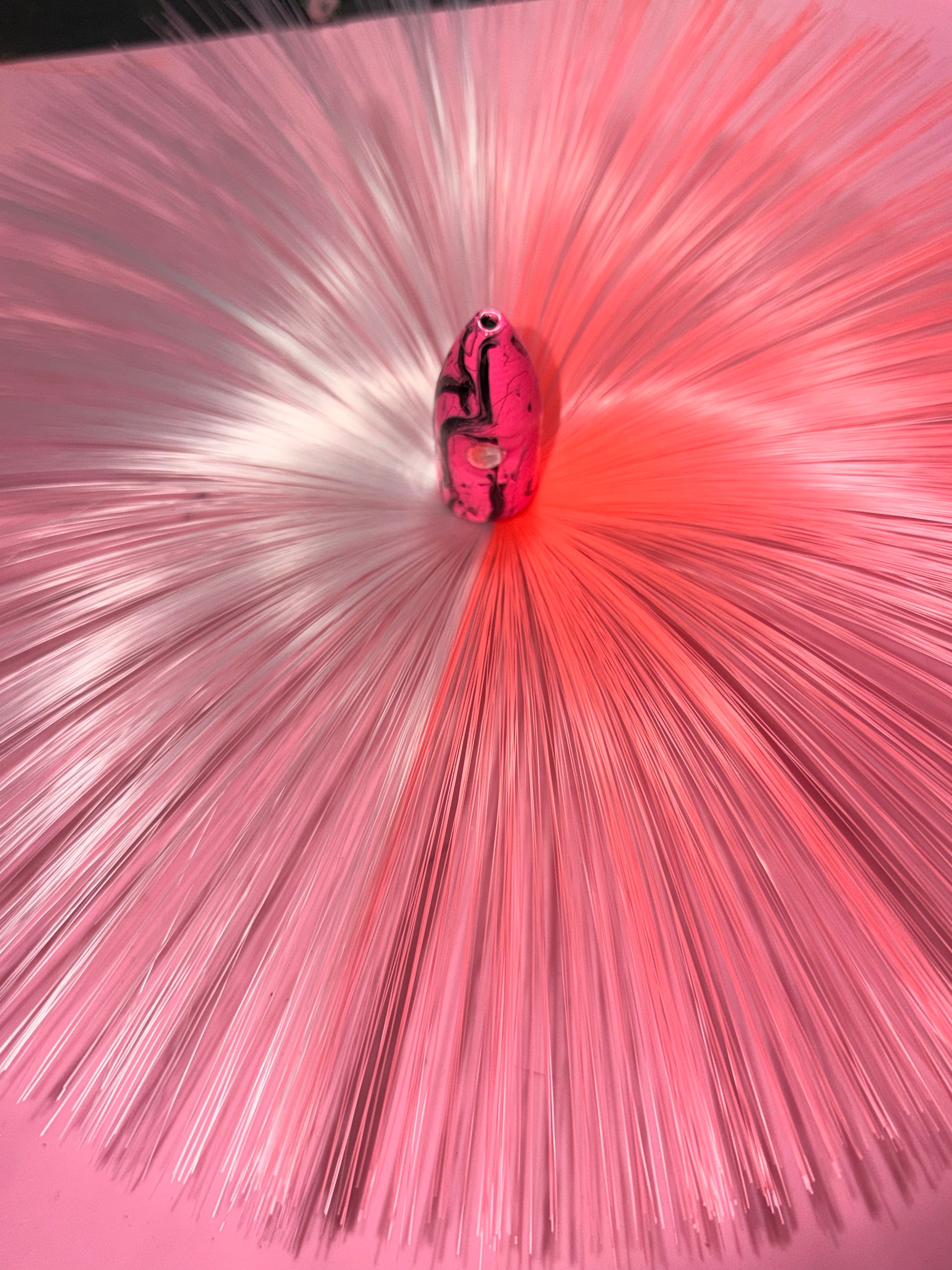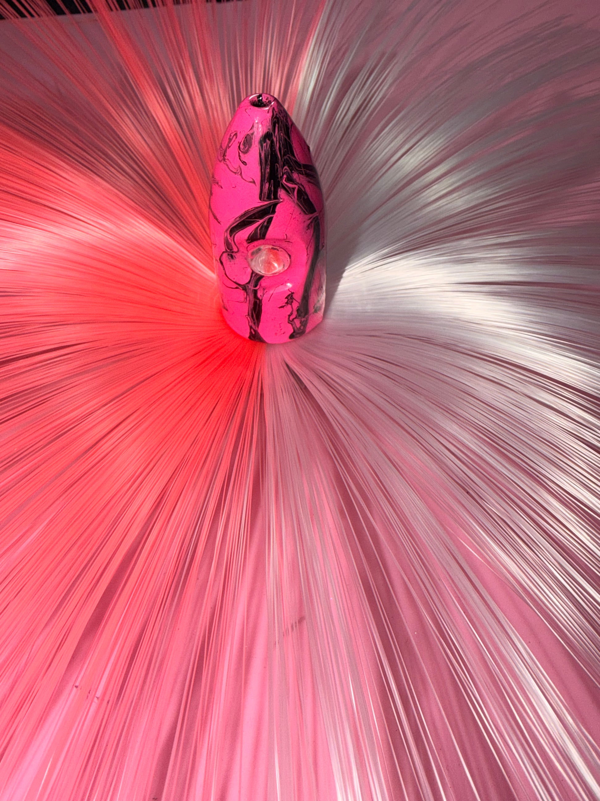 Hot pink base. Heavy black marbling.